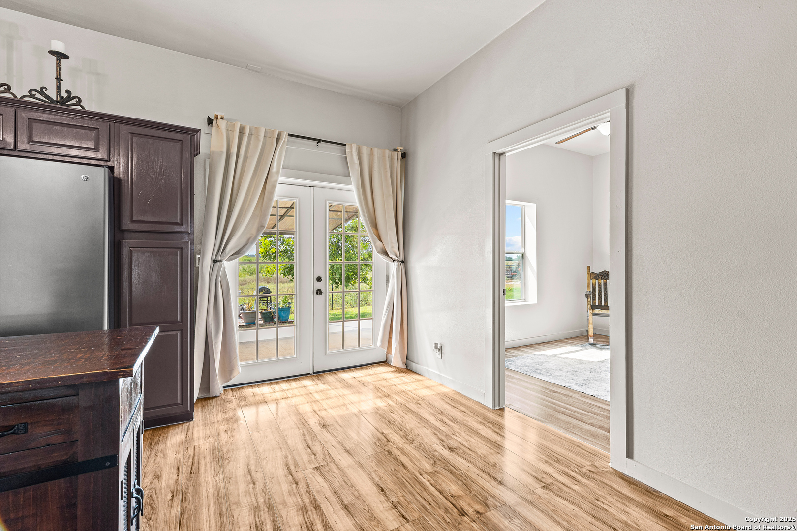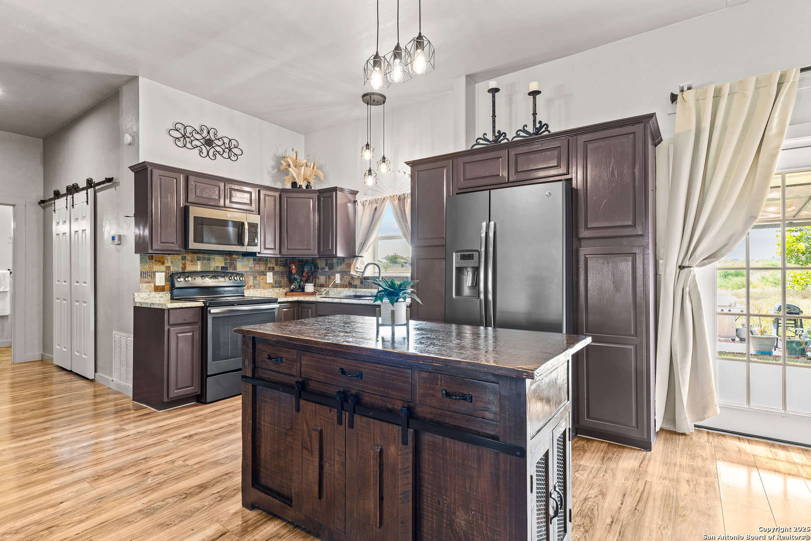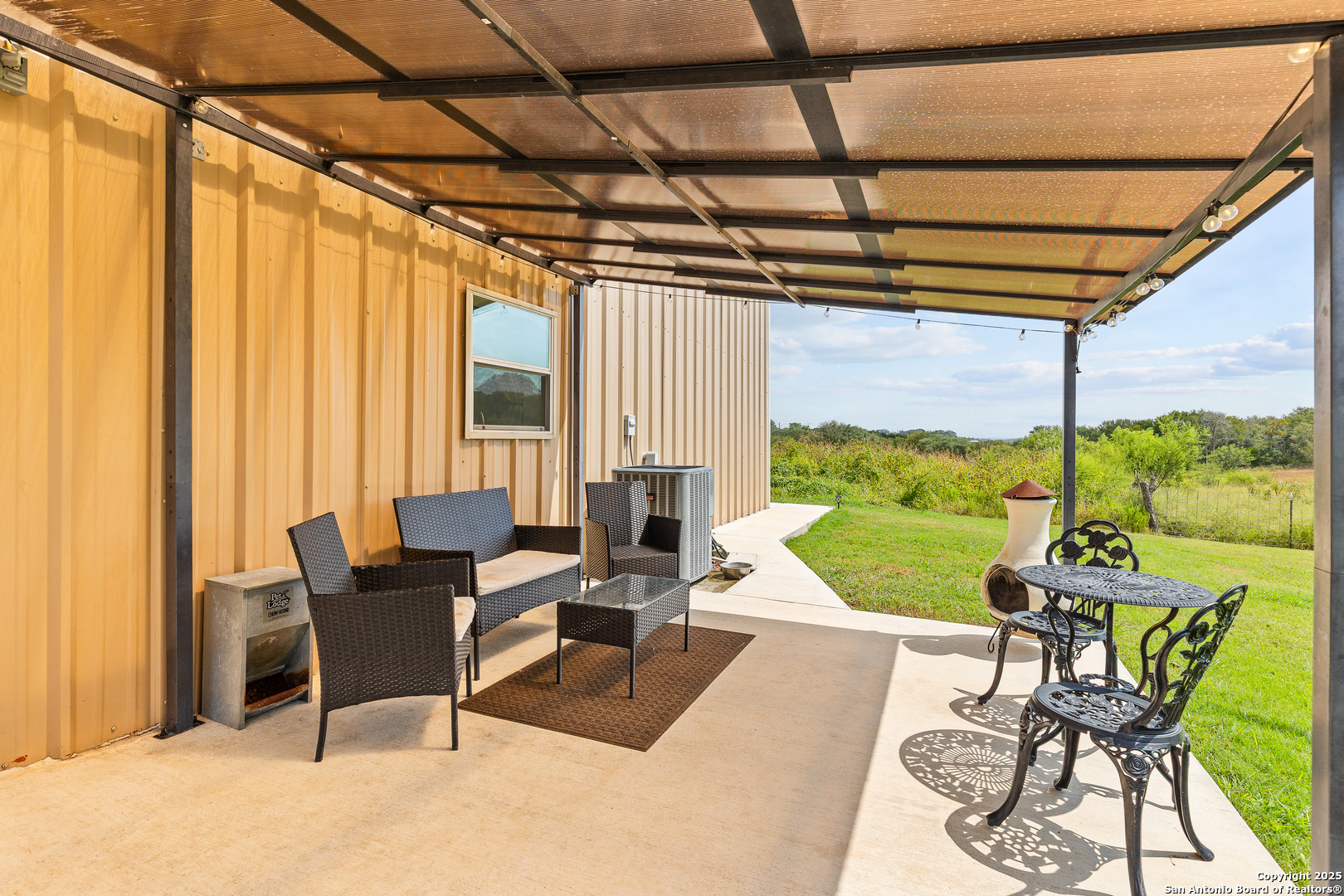 Located in the HEART of TEXAS...On the top of rolling hills just outside of Geronimo TX. Custom built modern farmhouse barndo. Offering 10 ft. ceilings, recessed lighting and hardwood floors. Cedar custom trim work along w/solid 36 inch Alder wood doors and hardwood floors. Insulated for those cold winter nights. Concrete slab. CONVENTIONAL SEPTIC SYSTEM.