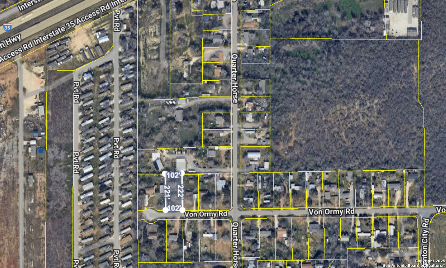 Build Your Dream or Invest for the Future! Discover a rare opportunity in the growing community of Von Ormy, Texas. This spacious 0.51-acre lot offers a peaceful, semi-rural setting just minutes from the I-35 corridor, providing quick access to San Antonio while still enjoying quiet country living. With wide frontage and generous depth, the property offers plenty of room for a custom home, workshop, RV/boat parking, or additional outdoor amenities. Electric, water, septic and RV hook-up on-site. No HOA and flexible usage make this a versatile choice whether you're looking to build, hold, or invest. No Survey available - buyer to purchase.