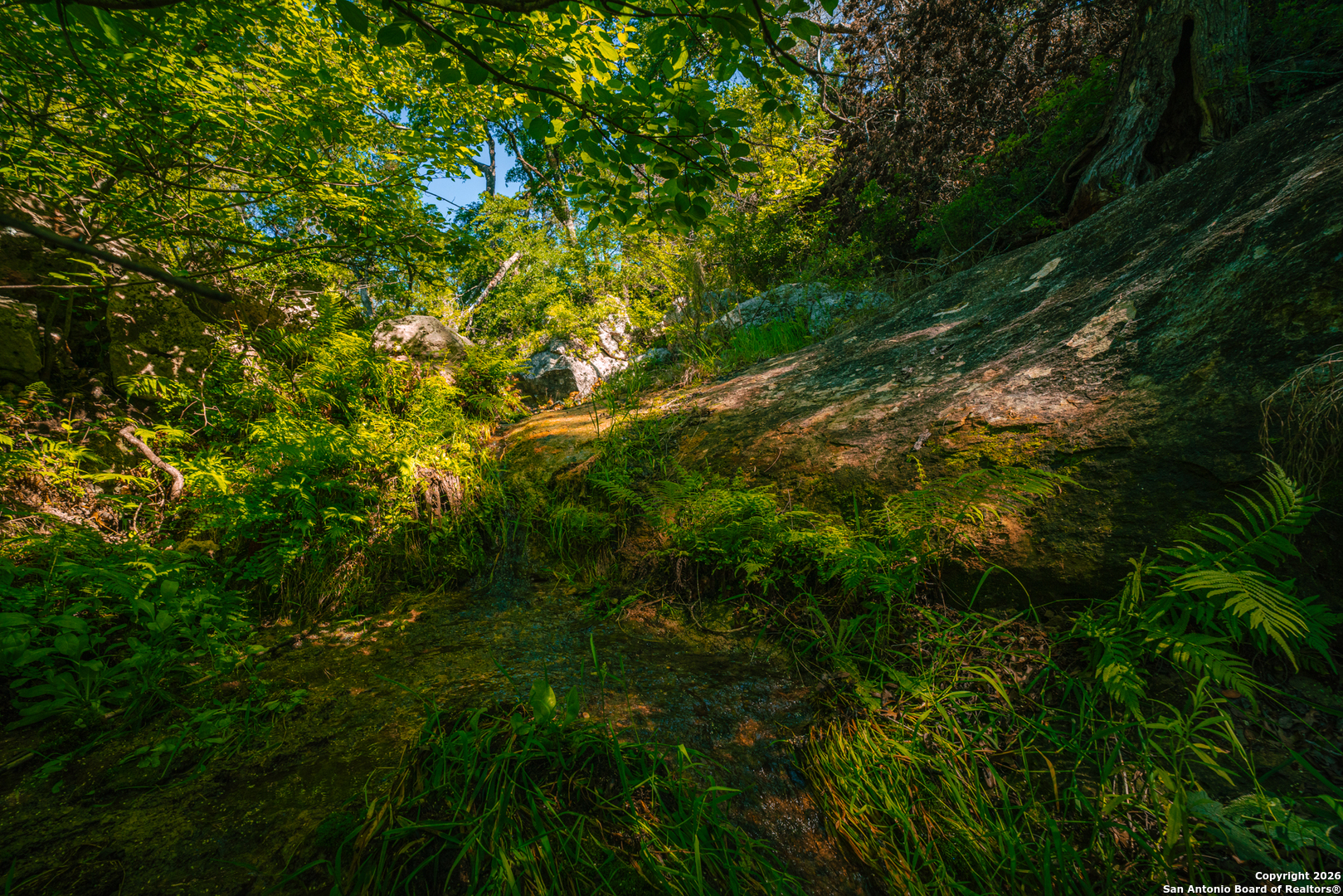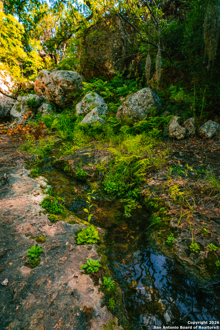 Rebecca Creek Ranch offers 11.13 acres of pristine Texas Hill Country just 30 minutes from Loop 1604 in San Antonio. With paved private road frontage and secondary access off Rust Road, the property delivers a rare balance of quiet country living and convenient access to the city. With no HOA and barndominiums allowed, this tract provides the freedom and flexibility to create a full-time residence, weekend retreat, or custom Hill Country escape. Location Situated in Comal County and part of the historic Rust Ranch, Rebecca Creek Ranch enjoys a highly desirable setting surrounded by large neighboring properties that enhance privacy and preserve the area's rural character. The ranch's proximity to San Antonio allows for easy commuting while maintaining the peaceful atmosphere that defines the Hill Country lifestyle. Landscape The land is rich with natural beauty and timeless Hill Country charm. A crystal-clear spring flows through ancient boulders into a tranquil pool, creating a striking focal point within the property. Mature heritage live oaks draped in Spanish moss, towering cedar elms, and lush native ferns provide shade, character, and habitat. The abundance of native wildlife further reinforces the sense of seclusion and connection to nature found throughout the ranch. Build Sites & Topography Gently rolling terrain and expansive eastern views create multiple ideal build sites beneath the canopy of mature hardwoods. Whether envisioning a custom home or barndominium, the property's topography offers both ease of construction and scenic surroundings that showcase the Hill Country's natural appeal. Utilities & Improvements Water service is already in place through Canyon Lake Water Service Company, streamlining the development process and adding immediate value. Paved road access further enhances convenience while maintaining the rural feel of the property. Rebecca Creek Ranch represents a rare opportunity to own a meaningful piece of Texas Hill Country where history, natural beauty, and development flexibility converge. Whether used as a personal retreat, primary residence, or long-term investment, this property offers a unique canvas to bring your vision to life.