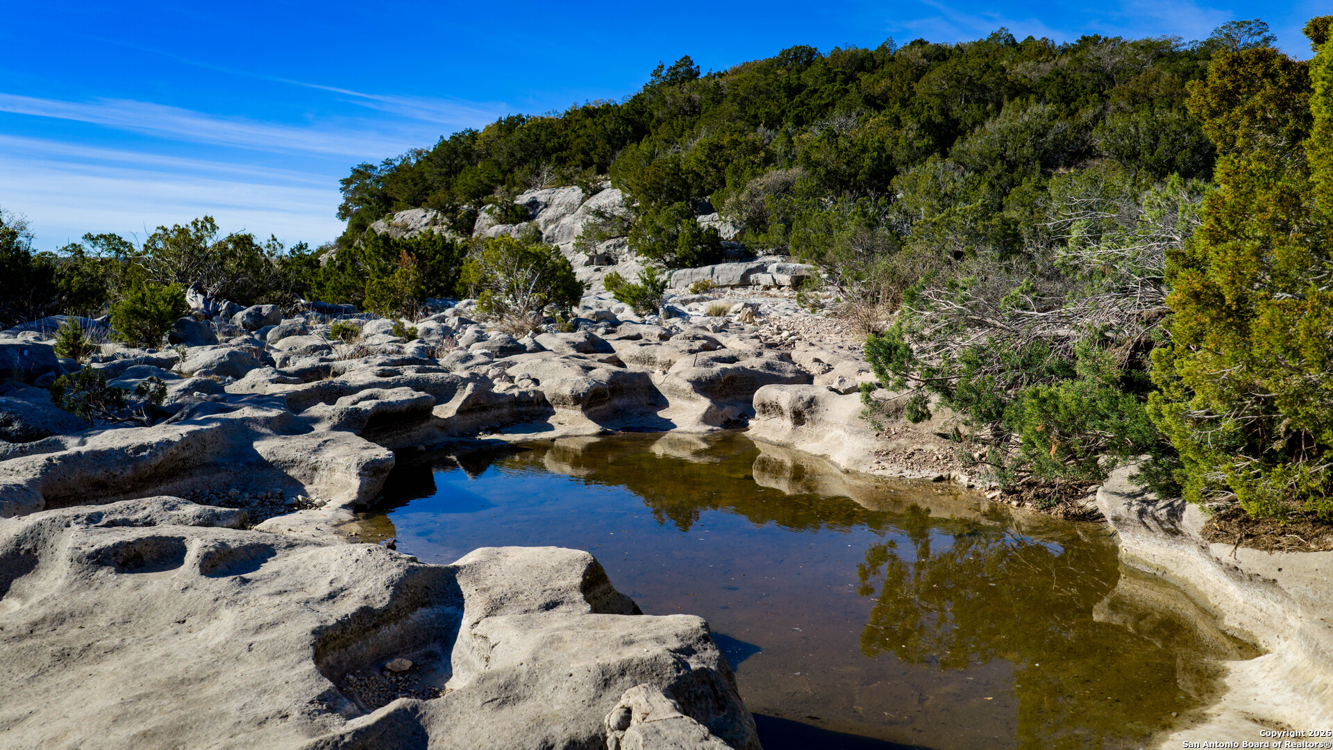 Overview: Cow Creek Ranch offers 3,597.47 acres in Val Verde County, Texas, showcasing an expansive landscape with diverse terrain, strong water features, and exceptional wildlife habitat. The ranch has been carefully managed for hunting and recreation, combining large-acre privacy with light infrastructure already in place. With rolling ridges, deep valleys, hardwood cover, and wet-weather creek frontage, this ranch provides a rare opportunity to own a sizable, turnkey property in one of Texas' most game-rich regions. Land & Topography: The ranch features rolling terrain with a blend of Pinion Pine, Live Oak, Shin Oak, Blue Oak, Mountain Laurel, Agarita, Juniper, and Guajillo. Elevations range from 1,720 ft to 2,060 ft, offering ridge-top views, valley bottoms, and open meadow areas. Approximately 35-40 acres of planted wheat patches provide strong forage for wildlife. Several caves and old dams add exploration opportunities and character to the landscape. Privacy is excellent, with the easement road ending directly at the ranch gate. Water Features: The property includes 2.74 miles of Cow Creek and nearly one mile of Red Bluff Creek, both of which are wet-weather creeks, along with miles of additional wet-weather runoff channels. Several pockets along the creeks hold water year-round, and the ranch has four existing dams, two of which hold water, contributing to a strong wildlife habitat and hunting environment. The ranch is further supported by a well-established water system with 13 water troughs and two water wells-one electric and one solar-ensuring dependable water distribution throughout the property. Wildlife & Hunting: The ranch carries a wildlife valuation, keeping taxes low and operations efficient. Wildlife is abundant, with a strong presence of Aoudad, Whitetail Deer, and Hogs, offering exceptional hunting opportunities. There are also occasional sightings of Sika, Elk, Black Bear, and Axis, adding to the diversity of free-range exotics on the property. Hunting infrastructure is already in place, including 12+ protein feeders, 15+ corn spreaders, and 13 water troughs, making the ranch ready to hunt on day one. Improvements: Improvements include a one-bedroom hunting cabin with a kitchen and living room, plus a 5th-wheel unit with its own bedroom, bath, and kitchen. An 80' x 40' barn with a 20' x 40' rear awning provides ample storage and workspace. The barn also features an 856 sq/ft upstairs area with potential to be converted into additional living quarters. Included equipment adds significant value: a 6,000 lb hopper trailer, 32,000 lb two-side hopper, and a disassembled walk-in cooler with hoist. Location & Access: The ranch is accessed by 5.5 miles of caliche road off Hwy 377. Travel times include 37 miles to Del Rio, 57 miles to Rocksprings, 184 miles to San Antonio International Airport, and 227 miles to Austin-Bergstrom Airport. The location offers both seclusion and practical access to nearby towns and major travel routes. Remarks: Cow Creek Ranch provides a rare opportunity to acquire a large, turnkey hunting and recreation ranch with strong water, varied topography, and extensive wildlife. The ranch includes minimal vertical improvements, offering the next owner a true blank canvas to develop as desired while still providing the essentials of a functional hunting camp setup. With established water systems, feed infrastructure, and exceptional wildlife diversity, the ranch is ready for immediate use while offering long-term potential in one of Texas' most desirable large-acre regions.