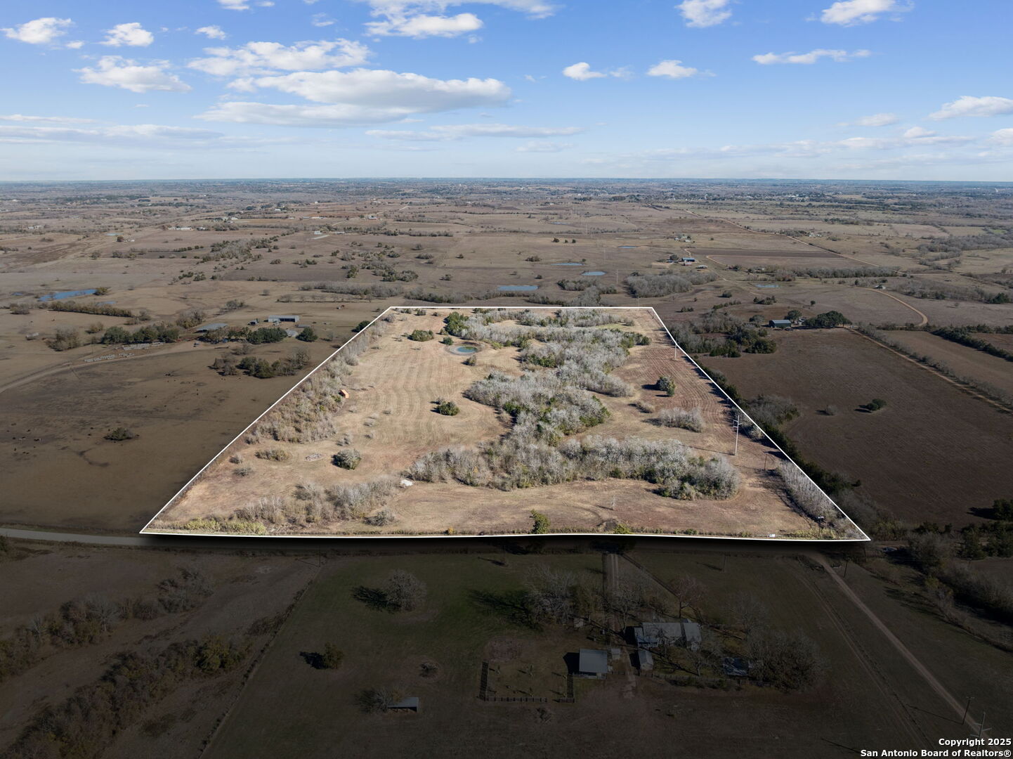 Set on 46.497 acres in Austin County, this unimproved ranch offers a classic Texas landscape of gently rolling terrain, open pasture, and native tree cover. A wooded, wet-weather creek winds through the property, complemented by a 0.3-acre pond that supports livestock and wildlife. The land is perimeter fenced with five-strand barbed wire and currently holds an agricultural exemption. Power is available along the east side of the property. A 40 x 8 foot storage container is already in place and will convey with the sale. The topography allows for multiple potential build sites for a future home or barn, offering flexibility without compromising privacy or views. Wildlife includes white-tailed deer and hogs, making the property suitable for recreational or hunting use in addition to agricultural purposes. Conveniently located approximately 17 miles southeast of Round Top and near Fayetteville, the ranch provides a quiet rural setting with access to nearby towns and State Highway 159. No residential improvements, water wells, or septic systems are currently in place, allowing the land to be developed to suit the next owner's vision.