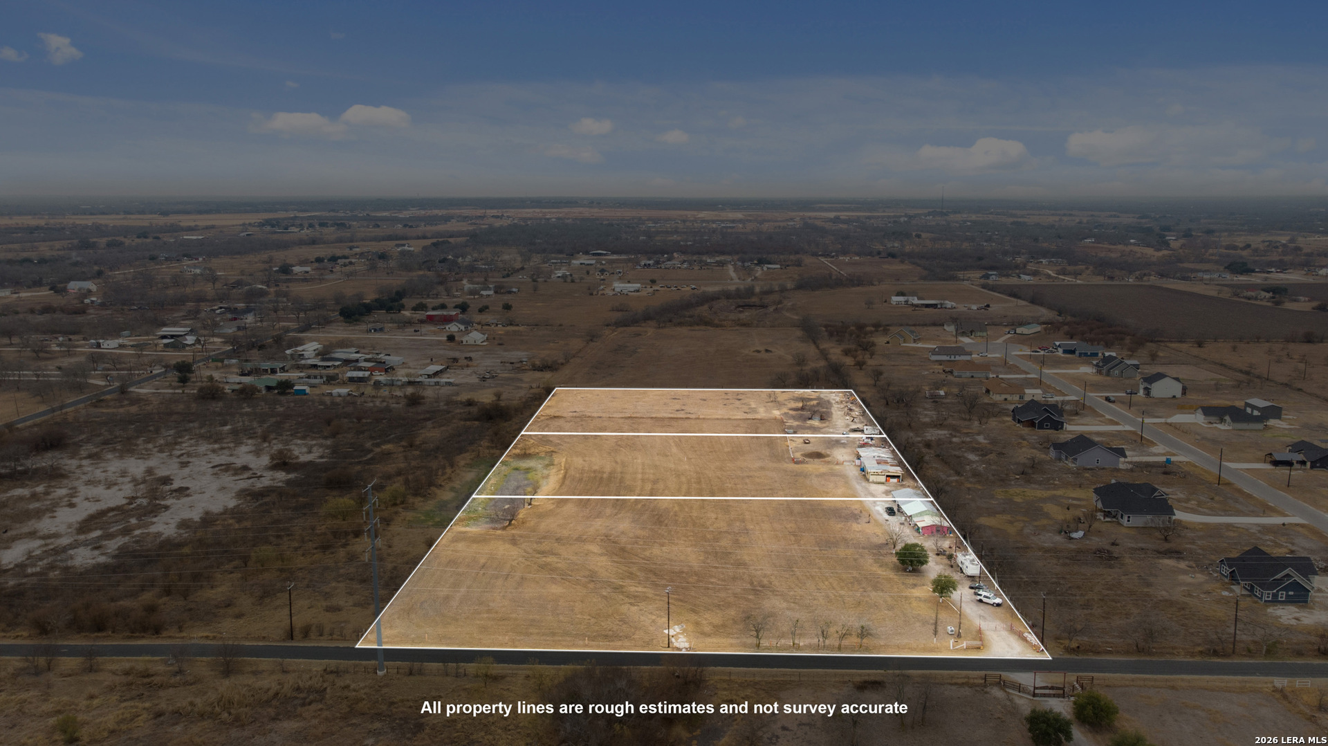 Exceptional opportunity just minutes from San Antonio. This is a 9 acre property, but the owner is willing to sell 3 or less acres! Also he is open to selling all 9 acres!! It is located outside city limits, offering unrestricted use suitable for residential, multifamily, agricultural, or mixed-use development. Enjoy this beautiful, leveled, and clear land in a quiet, peaceful country living. Offering you the freedom to create your vision with no known restrictions! Plenty of room to build your dream home or great investment opportunity. Conveniently close to HEB, Dining, and Schools! Utilities are available at the street (buyer to verify). There is a dry pond in the property that fills when it rains (He's also open to selling all 9 acres if interested!)