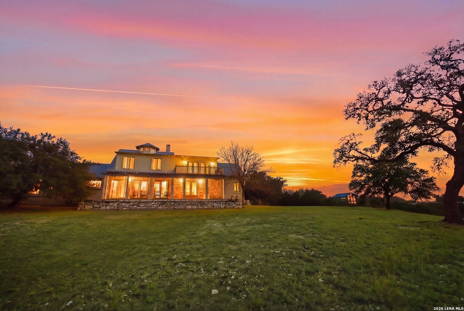 IF YOU ARE LOOKING FOR YOU OWN PARIDISE, THIS IS IT. 3985 SF MAIN HOME, 1364 SQ FT CABIN, BARN, WORKSHOP WITH 4 BAYS (GARAGE) HEATED POOL AND SO MUCH MORE. NO RESTRICTIONS OR HOA TO DEAL WITH. THE MAIN HOME IS A CUSTOM-BUILT ONE-OF-A-KIND HOME WITH MASSIVE LIVING, EATING AND KITCHEN AREAS MADE FOR ENTERTAINING THE LARGEST GROUPS. THE MASSIVE LIVING AREA CENTERS AROUND THE 30 FOOT CATHEDRAL CEILINGS, HAND-SCRAPED WHITE OAK FLOORS, FLOOR TO CEILING STONE FIREPLACE, AND ANDERSON E-SERIES WINDOWS WITH FANTASTIC VIEWS OF HILL COUNTRY. THE KITCHEN IS THE ENVY OF EVEN THE MOST REFINED CHEF WITH IT'S TALL WOOD CEILIINGS, STONE COUNTER TOPS, HUGE ISLAND WITH STOVE, LOTS OF CABINETS, ANOTHER BUILT-IN DOUBLE OVEN (3 TOTAL), WINE RACK, ADJOINING BREAKFAST ROOM/2ND LIVING AREA WITH FIREPLACE, POT RACK ABOVE THE ISLAND AND SO MUCH MORE. THE MASSIVE DINING ROOM OPENS TO THE KITCHEN AND HAS ENOUGH ROOM FOR THE LARGEST TABLE YOU COULD EVER WANT AND FANTASTIC VIEWS. THE MASTER BEDROOM FEATURES A PRIVATE PATIO, LUXURY BATH FEATURING A LARGE OVAL TUB AND SEPARATE SHOWER PLUS BIG WALK-IN CLOSET. THERE IS ALSO A SECOND BEDROOM DOWNSTAIRS AND ONE UPSTAIRS WITH DECK OVERLOOKING HILL COUNTRY. IN ADDITION TO THE UPSTAIRS BEDROOM THERE IS ALSO A LOFT OFFICE WITH VIEWS OF HILL COUNTRY. AS AMAZING AS ALL THIS IS THERE IS MORE. A 1364 SF CABIN WITH WRAP-AROUND PORCH TO TAKE ADVANTAGE OF THE FANTASTIC VIEWS, A LIVING AREA FEATURING FLOOR TO CEILING WINDOWS, AN UPSTAIRS BEDROOM WITH FANTASTIC VIEWS. THE KITCHEN FEATURES HAND-CRAFTED WOOD, CABINETS, COUNTERS AND ISLAND WITH LOTS OF DRAWERS PLUS LOTS OF CABINET STORAGE. THERE IS A SMALL SECOND BEDROOM DOWNSTAIRS. BUT THIS IS STILL NOT ALL. THERE IS A TWO LEVEL HEATED, RESORT STYLE POOL AND SPA, A 30 X 30 HEATED AND AIR-CONDITIONED SHOP, A BARN WITH ELECTRICITY AND SO MUCH MORE. THIS IS THE ULTIMATE IN COUNTRY LIVING BUT STILL CLOSE TO EVERYTHING. ONLY 10 MINUTES TO BANDERA, 20 TO HELOTES AND ABOUT 40 MINUTES TO SAN ANTONIO AIRPORT OR DOWNTOWN. ALL WE NEED NOW IS YOU!!