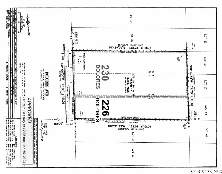 Lot has been cleared and leveled of any structures. Lot includes 3 lots, Lot 13, 14 & 15. Lot has also been authorized by the city for 2 addresses if need be; Lot 14 & 15 are 230 Dolores Ave and Lot 13 is 226 Dolores Ave. Please refer to images for better reference. Width of Lot is 75ft making each lot an approx. even 25ft in width. Current owner has 2 floor plans cleared by an engineer for 2 homes to be built on this lot 1 home on lots 14 & 15 and another on 13.