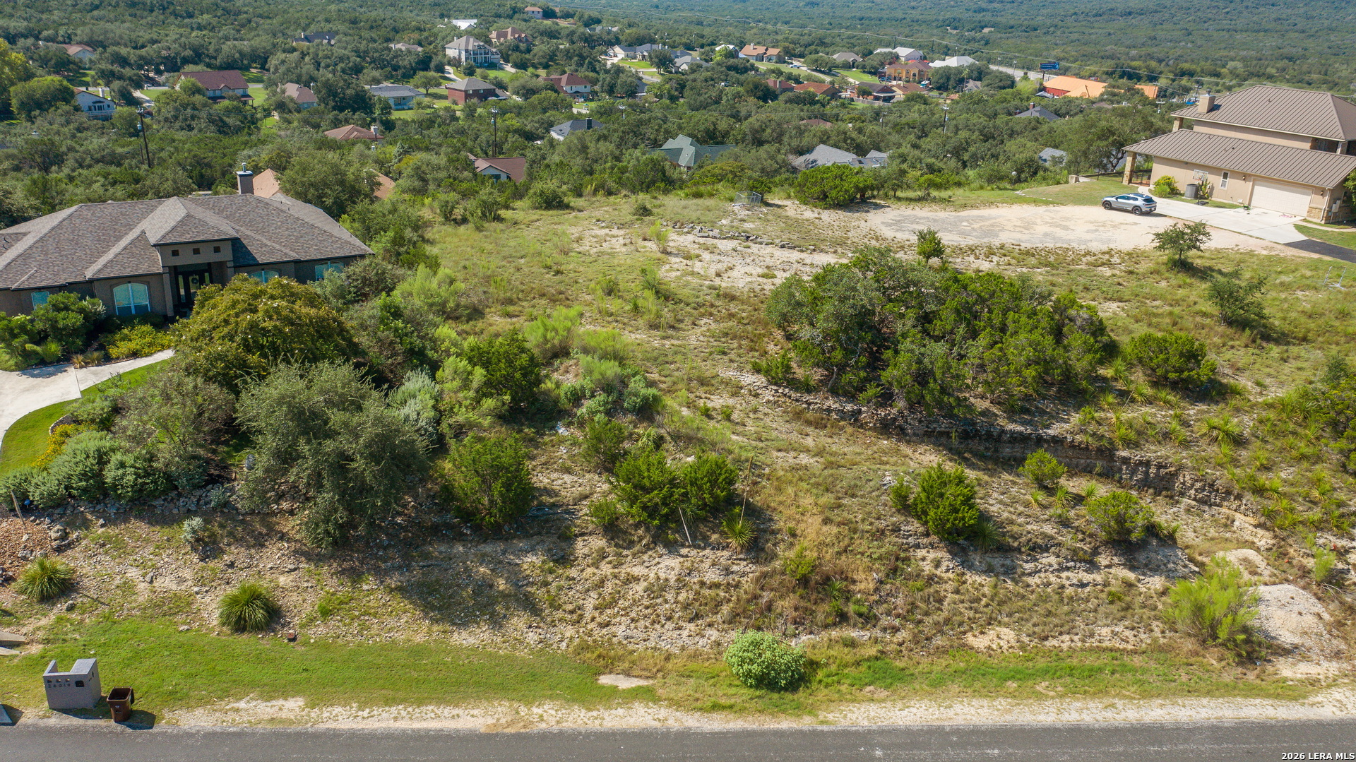 VIEWS!! VIEWS!! VIEWS!! Positioned on one of the highest elevation residential streets in Bexar County, this is one of the few remaining hilltop lots in Timberwood Park and one of the very few that offer both front and back views. A switchback driveway has already been cut to the cleared building site on the top of the lot and a topographical Survey and CAD file will be provided, making this a build-ready opportunity to build your dream home. Neighborhood park has pool, clubhouse, golf course, and a neighborhood pond stocked with fish. Great school districts. Easy access to 1604 and 281. Low HOA.