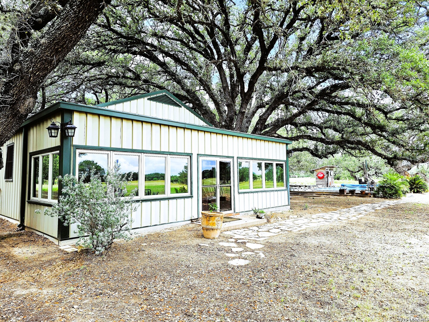 Stunning 36-acre Ag-Exempt estate in Devine, 5min to I-35 and 20min to San Antonio. Described as "improved pasture irrigated" land by Medina County, the land caters to high-yield hay or grazing. This unrestricted property features two homes (3,647 combined SF), a massive 5,000SF multi-use building, and 6,000SF of space for events, workshops, storage or livestock. Entertain among century oaks, relax by the pool, and enjoy the sunroom and treehouse deck. Perfect for multigenerational living, ranching, farming or other commercial endeavors, the land is turnkey with city water, multiple wells, and distributed power. Strategically located near Lytle, Castroville, and Hondo. Market growth is highly anticipated with the $900M "Cinco" data center campus slated for 2027 in Lytle. Low taxes. Devine ISD. Schedule your tour today!