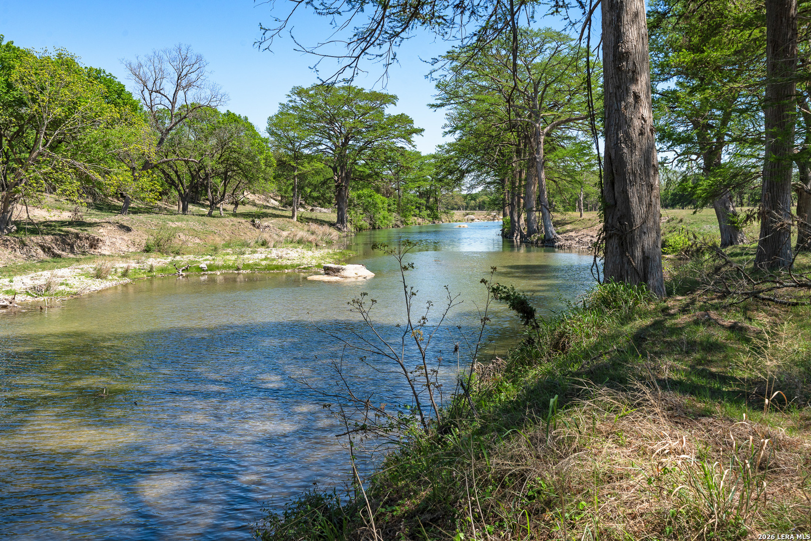 Lot 8 at ClearWater Ranches presents a rare opportunity to own premier Guadalupe River land, with seller financing concessions available and thoughtfully designed restrictions in place to preserve the integrity, beauty, and long-term value of this exceptional community. Ownership includes access to a private river park where evenings gather around a glowing fire pit and mornings begin with coffee in hand, walking down crafted steps to the water's edge. This is land that invites connection-to nature, to family, and to a slower, more intentional pace of life shaped by the river. Ideally located just 5 minutes from Comfort, 20 minutes to Boerne, and approximately 40 minutes from San Antonio, the land strikes a rare balance between convenience and escape. You can spend the day enjoying wineries, dining, or shopping, and still return to your land in time to watch the sunset filter through the trees. It feels private and removed, yet effortlessly accessible. The land itself offers a beautiful composition of open pasture and mature hardwoods, with gentle topography that naturally guides you toward the river corridor. Towering oaks anchor the landscape, casting shade and creating a sense of permanence, while open areas provide flexibility for future improvements or simply space to enjoy the land as it is. Multiple build sites are thoughtfully positioned throughout, each offering its own unique perspective and setting. At the heart of the property is approximately 340 feet of Guadalupe River frontage, where clear, steady water flows beneath a canopy of massive pecan and cypress trees. The setting feels timeless-quiet, shaded, and deeply peaceful. Across the river, a protected neighboring property ensures lasting privacy and unspoiled views. Whether fishing at sunrise, floating on a warm afternoon, or simply sitting along the bank, the river becomes an everyday experience rather than an occasional luxury. Anchoring the land is a charming 1,800 square-foot home built in the 1950s with classic Sisterdale stone construction. The home features three bedrooms, two bathrooms, original wood flooring, and two fireplaces-including one in the master bedroom-offering warmth and character that reflect the history of the land. Surrounded by heritage oaks, the homesite feels established and inviting. Modern infrastructure is already in place, including underground electric, fiber internet, and a strong water well producing approximately 30 gallons per minute, allowing for both immediate enjoyment and future enhancement. Wildlife moves naturally across the land, with whitetail and axis deer, turkey, and native species frequently seen along the river and within the hardwoods. The combination of water, cover, and open space creates a dynamic environment that feels alive year-round. This land offers exceptional flexibility-whether as a private retreat, a refined weekend escape, or a long-term investment. With river frontage, quality improvements, and a community designed to protect and enhance the land, Lot 8 stands as a rare offering along one of the most sought-after stretches of the Guadalupe River.