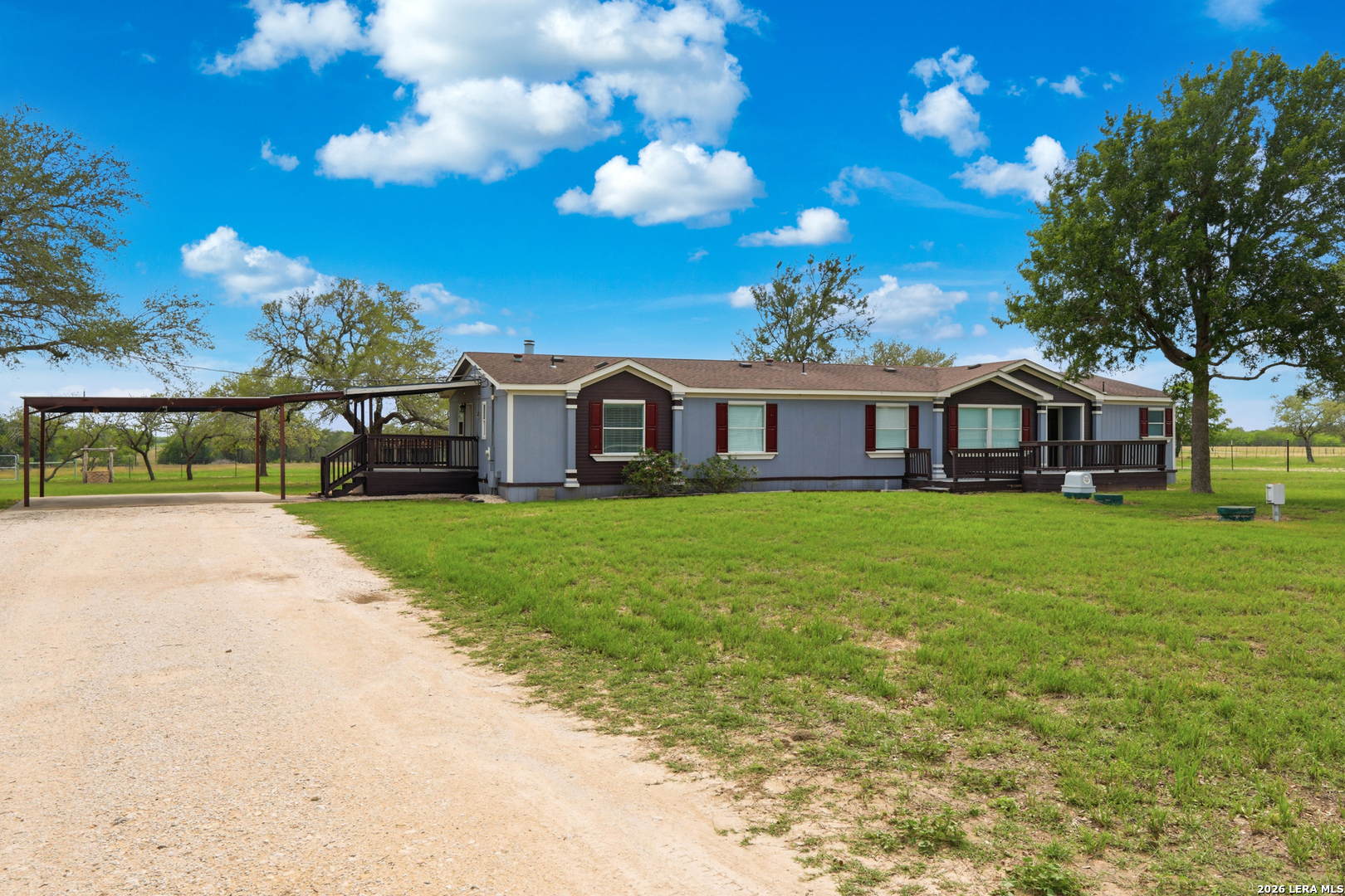 Spanning just under 46 acres in Gillette, TX, this ag-exempt and unrestricted ranch blends functionality with country living. The property features a beautifully updated double-wide home, a 30x40 shop equipped with electricity, sink, and water heater, plus a 20x50 camper building with an attached lean-to for additional covered storage. Additional improvements include sheds, cattle pens, a chicken coop, and quality perimeter fencing, making it well-suited for livestock, recreation, or a variety of uses. The land offers open grazing pastures, a water well, and multiple ponds, including a large pond with a covered dock that is currently holding water at a reduced level. With normal rainfall, the ponds have strong potential to fully enhance the property's appeal. Enjoy peaceful rural living with the convenience of being just 55 miles from downtown San Antonio